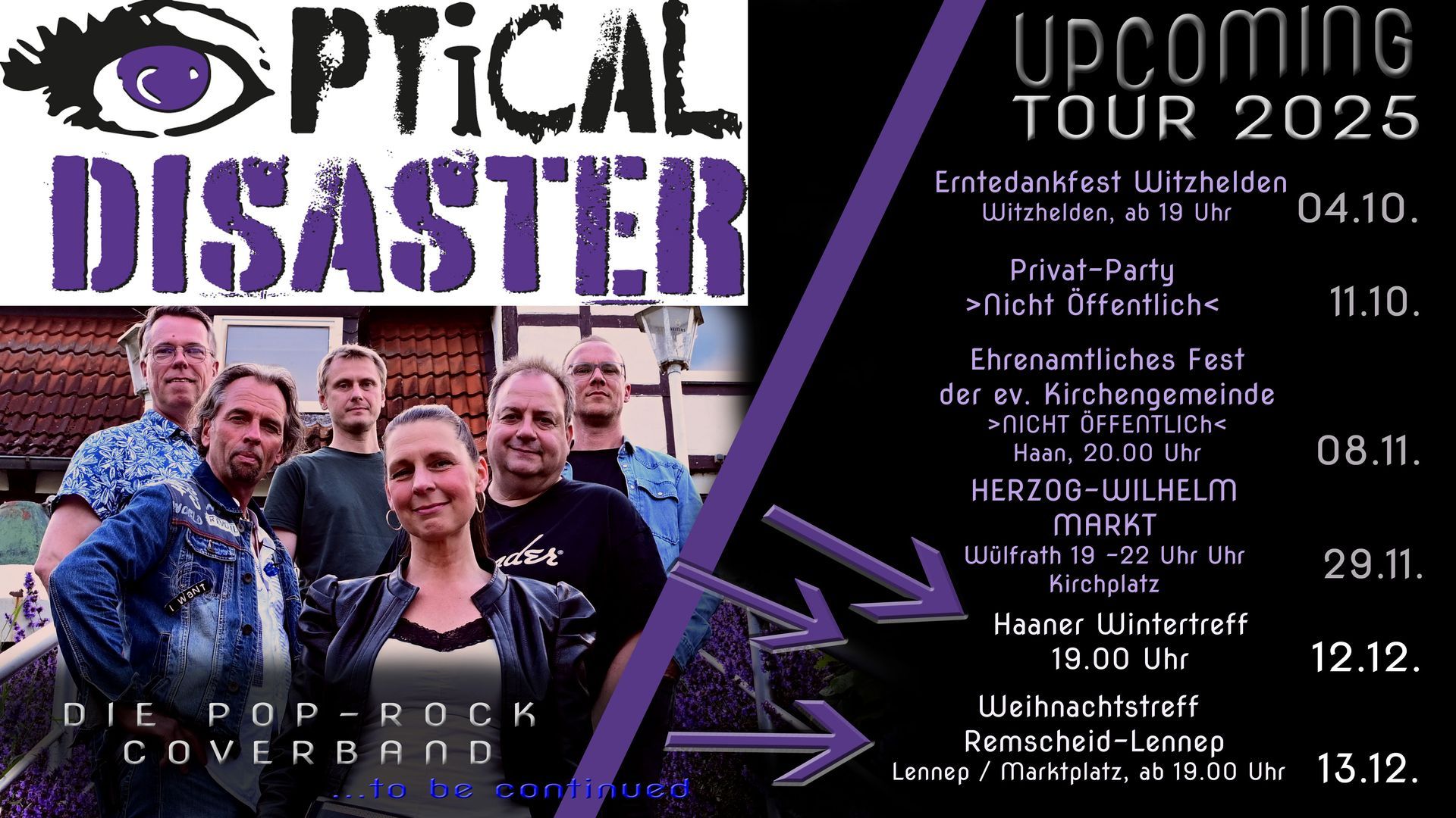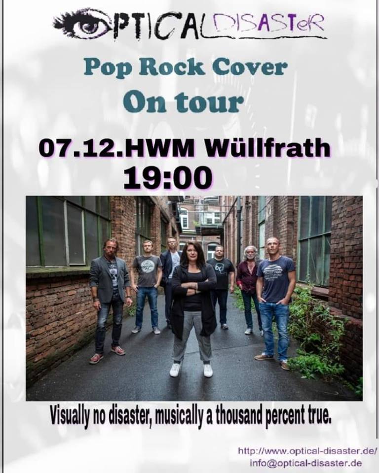 - Das Konzert heute mit Optical Disaster wurde abgesagt wegen eines Wassereinbruchs im Bürgerzentrum Wermelskirchen. Nähere Infos wegen Ersatzveranstaltung bald auf unserer Page