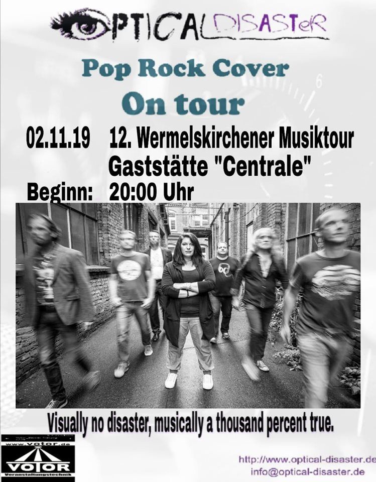 - Das Konzert heute mit Optical Disaster wurde abgesagt wegen eines Wassereinbruchs im Bürgerzentrum Wermelskirchen. Nähere Infos wegen Ersatzveranstaltung bald auf unserer Page